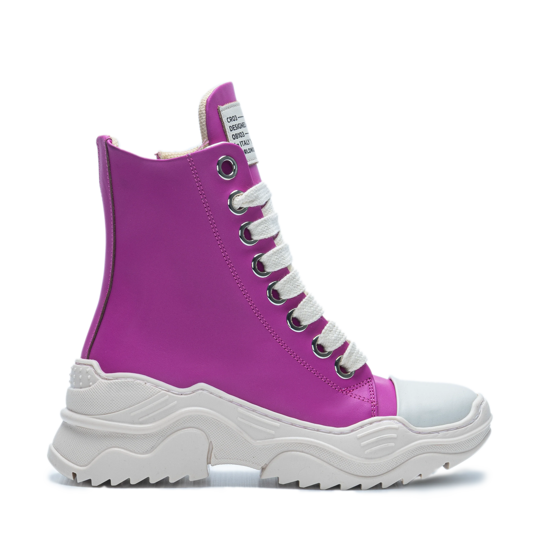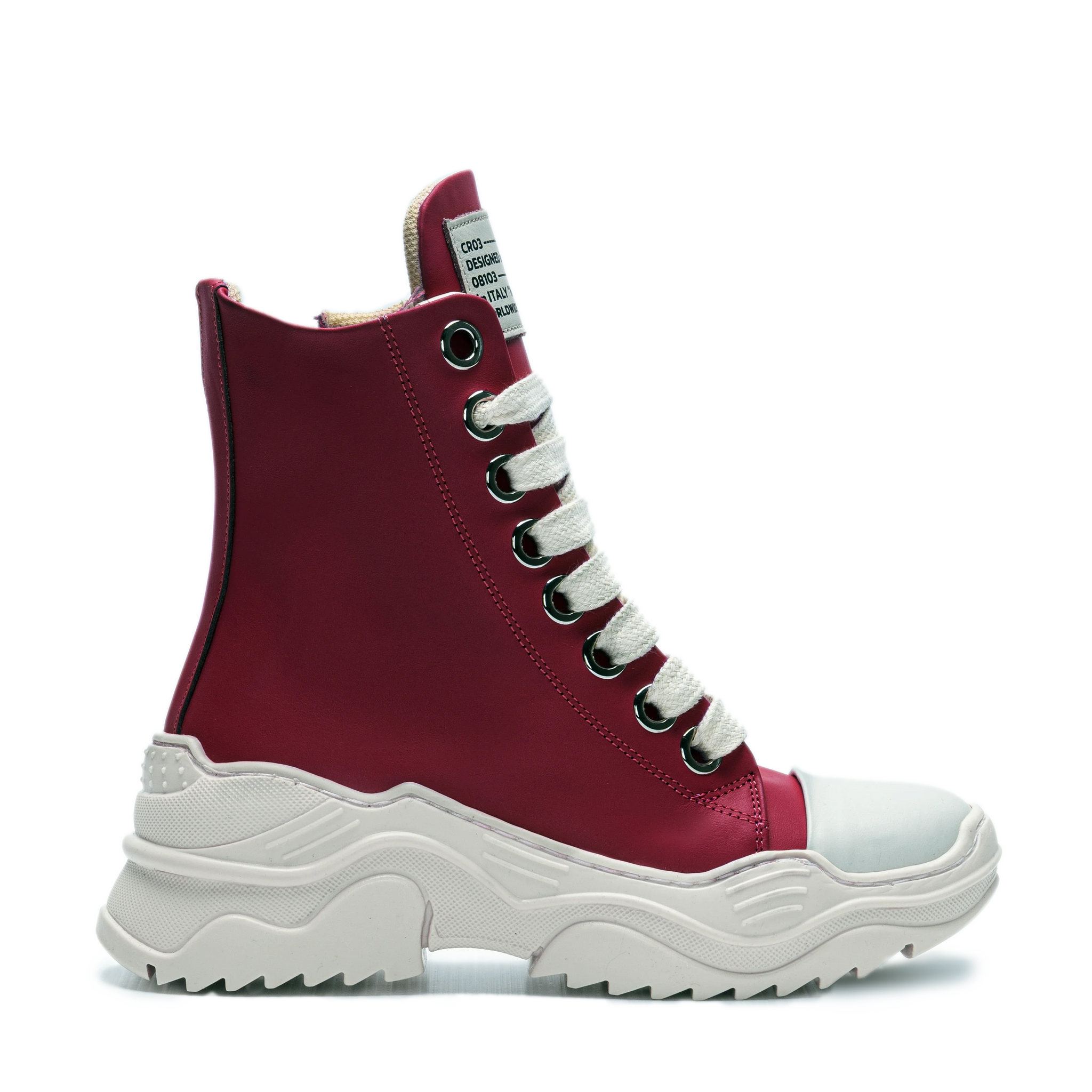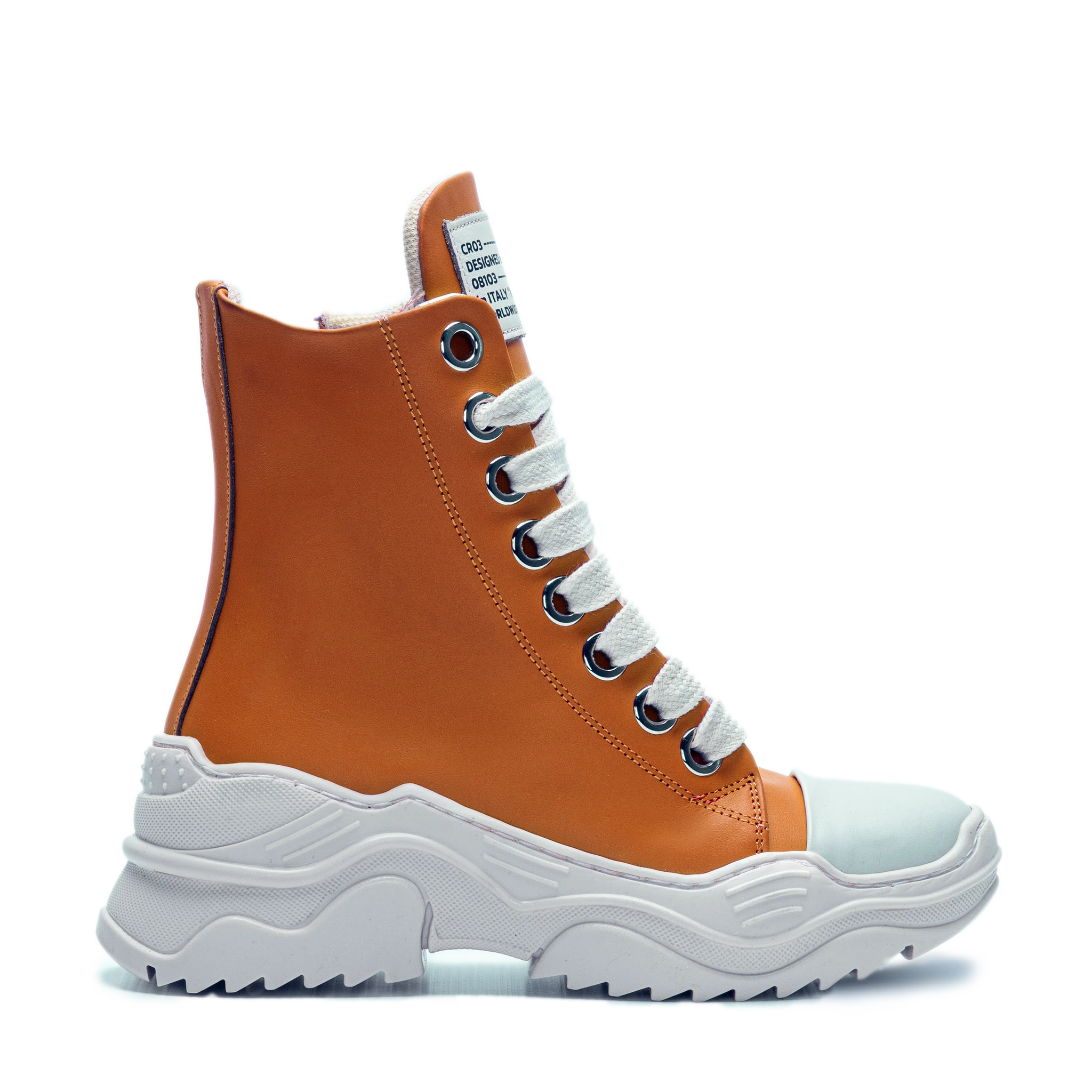 • High-top silhouette with metal eyelets