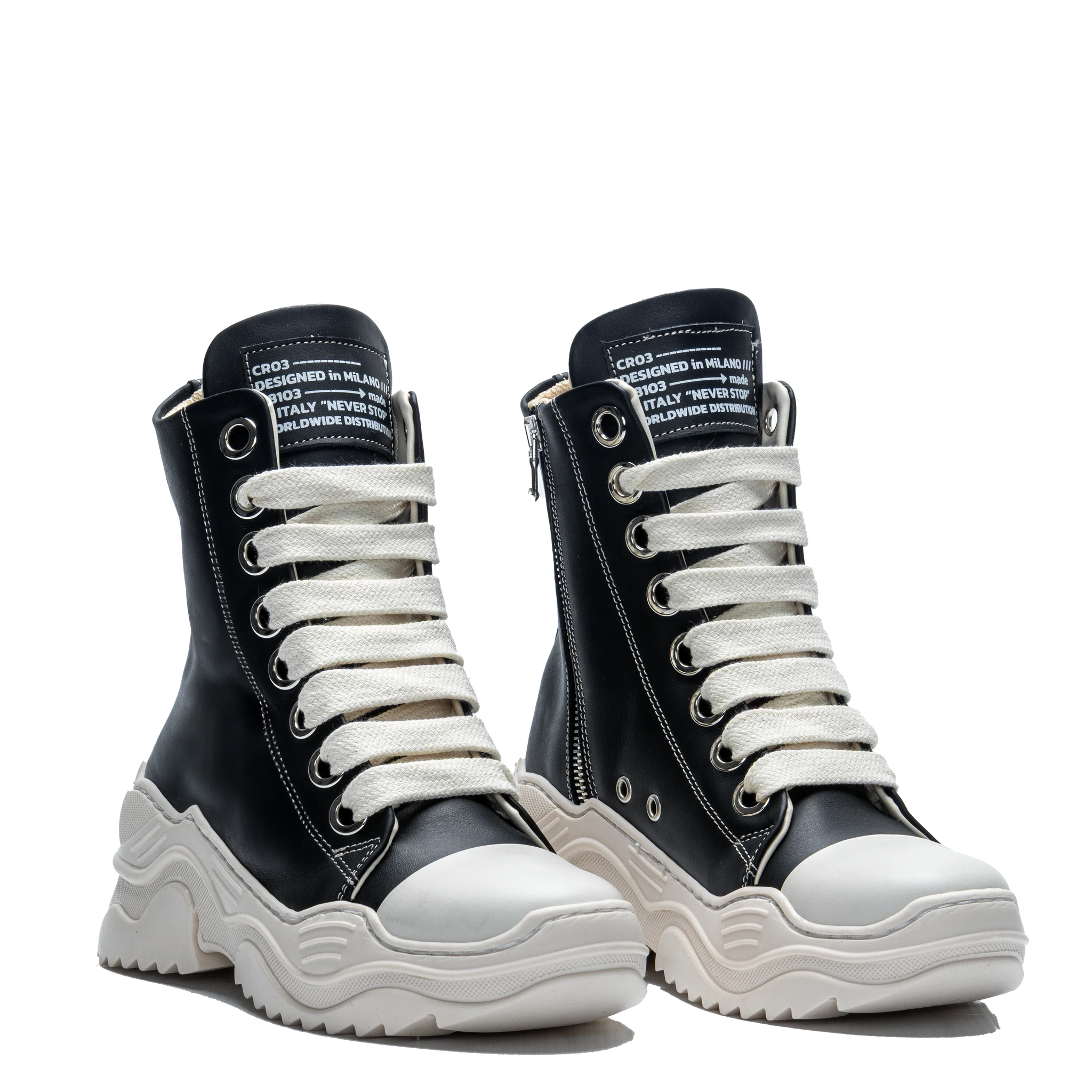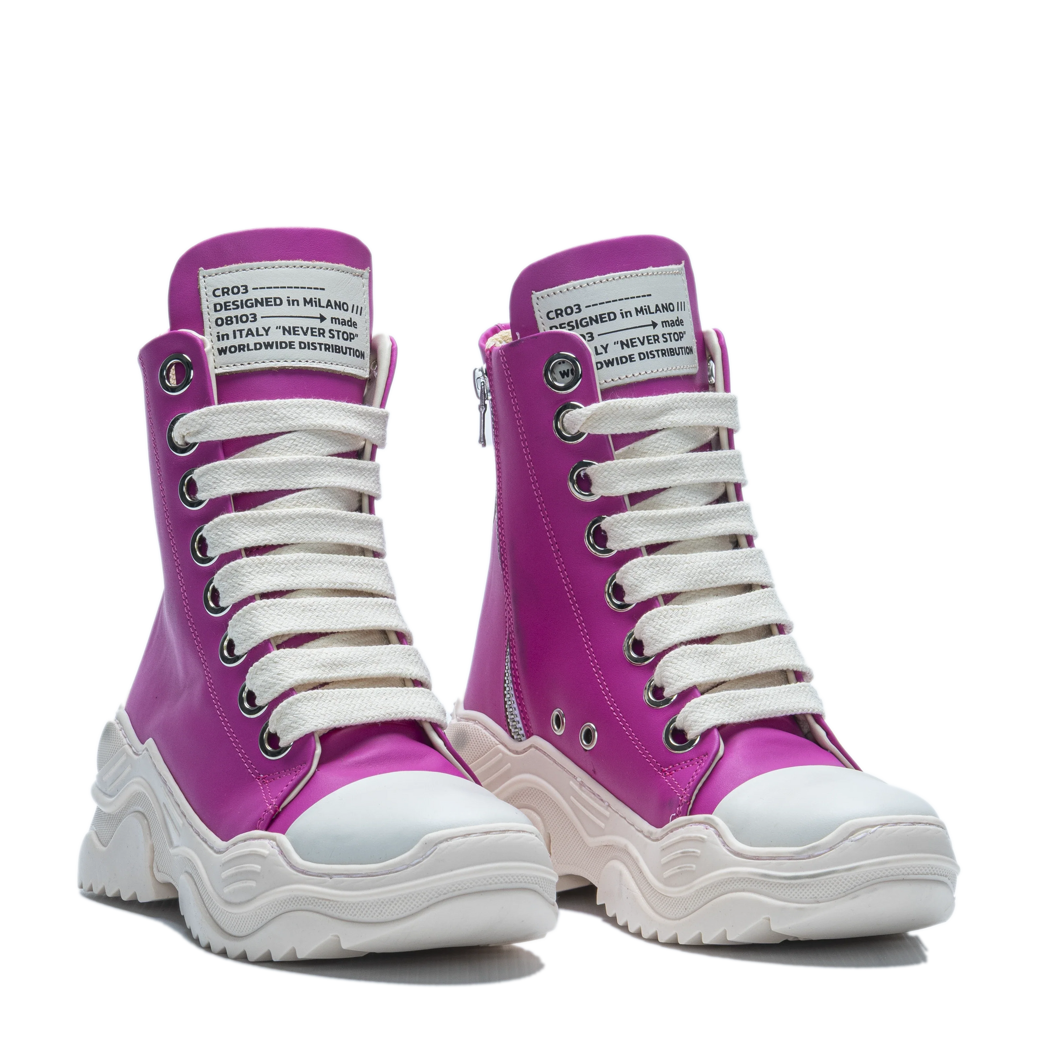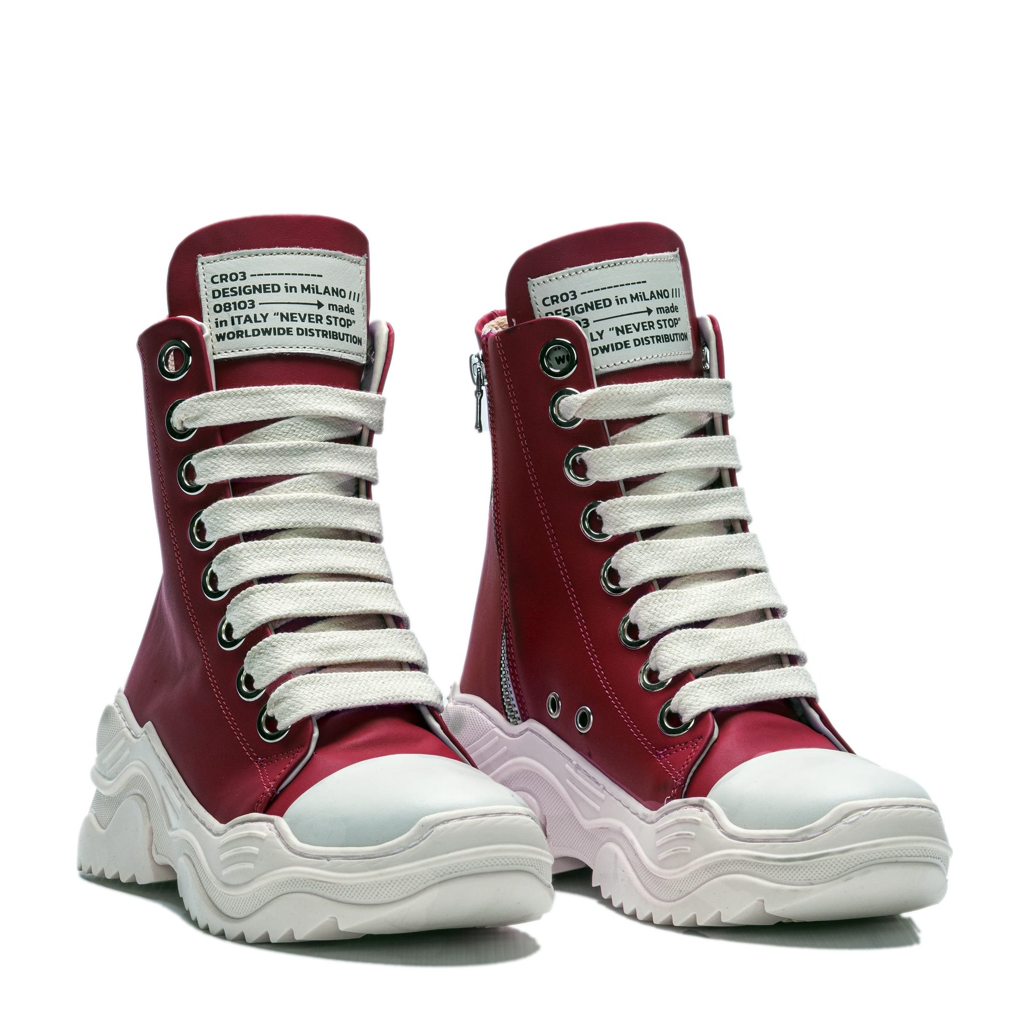 • High-top silhouette with metal eyelets
