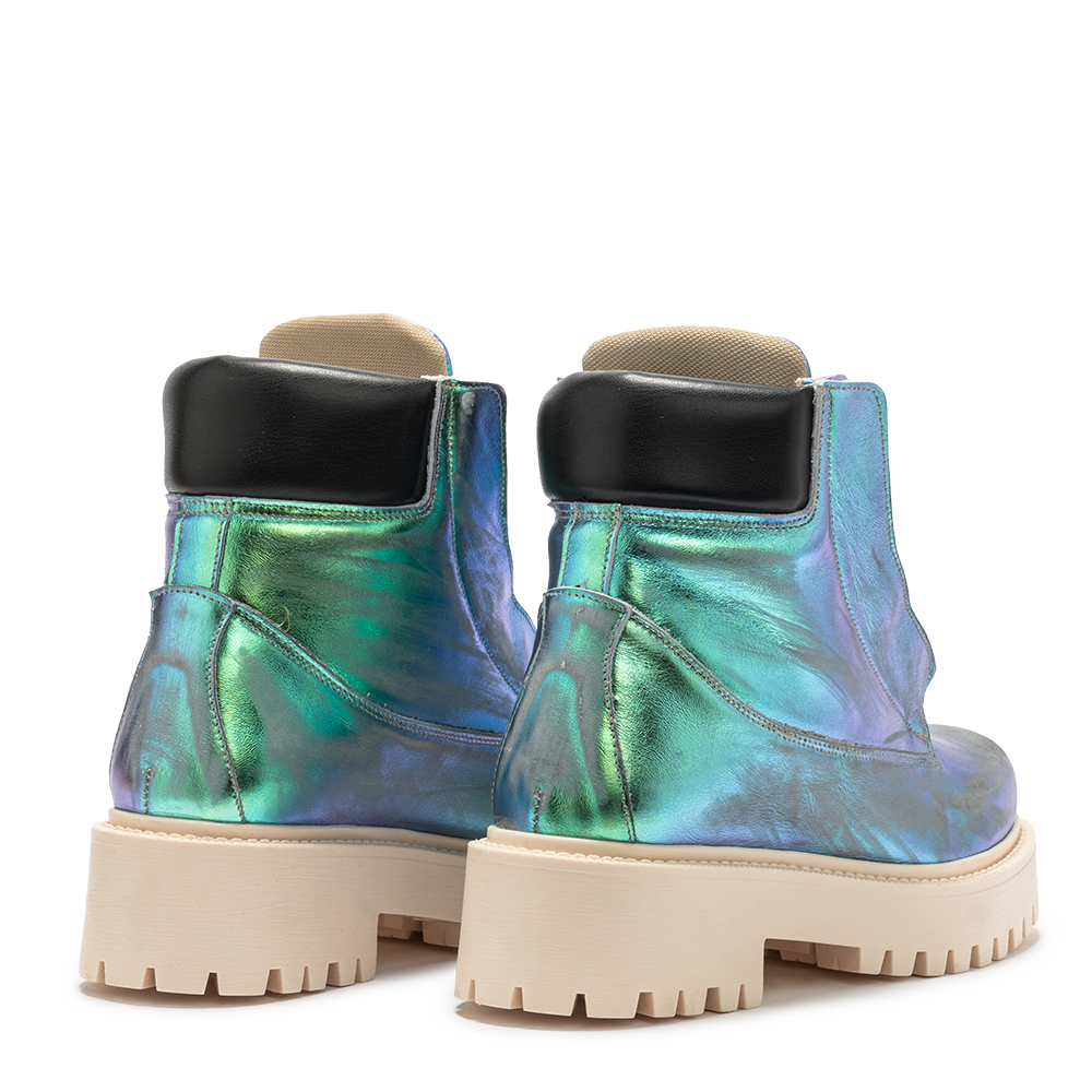 Un incontournable pour celles qui souhaitent ajouter une touche de glamour et d'élégance à leur garde-robe. La matière opalescente unique capte la lumière de façon hypnotique, rendant ces bottes absolument inimitables.